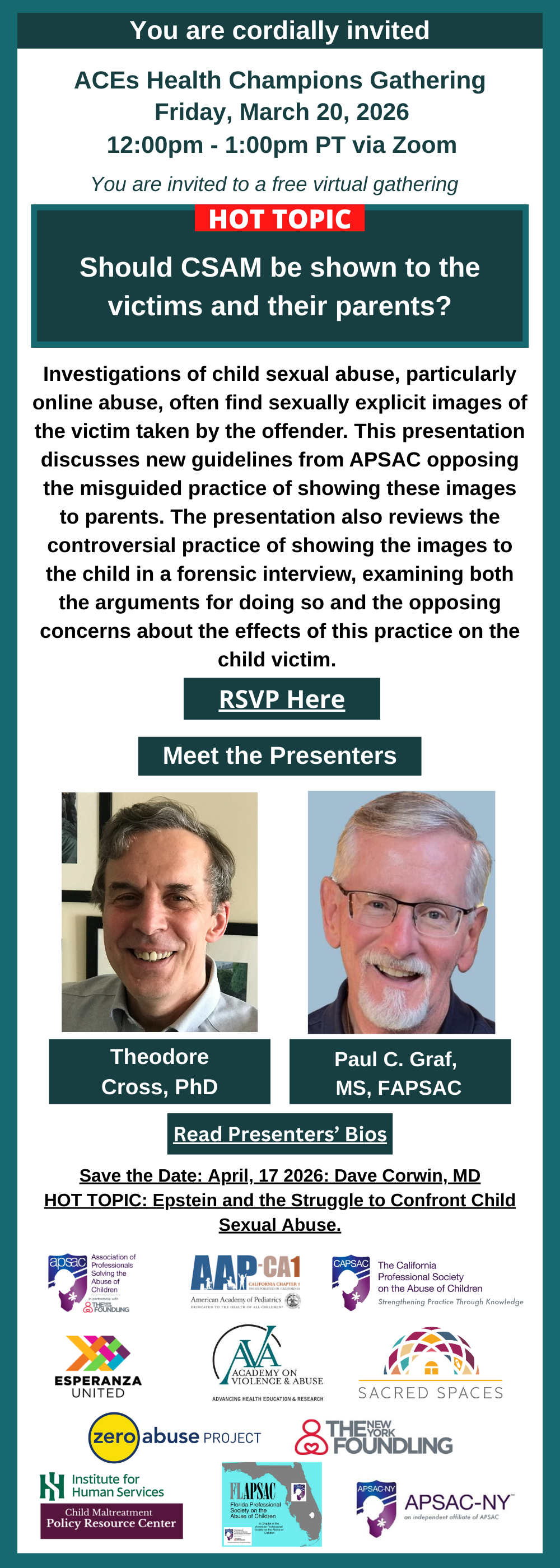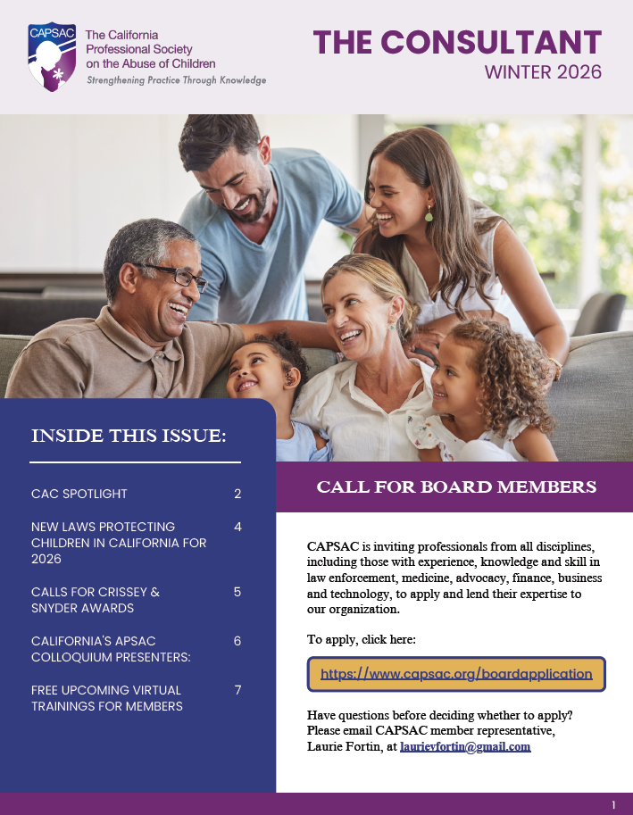 CAPSAC is the California chapter of the American Professional Society on the Abuse of Children (APSAC), a non-profit, leading national organization founded in 1986, which supports professionals engaged in all aspects of service to maltreated children and their families.
